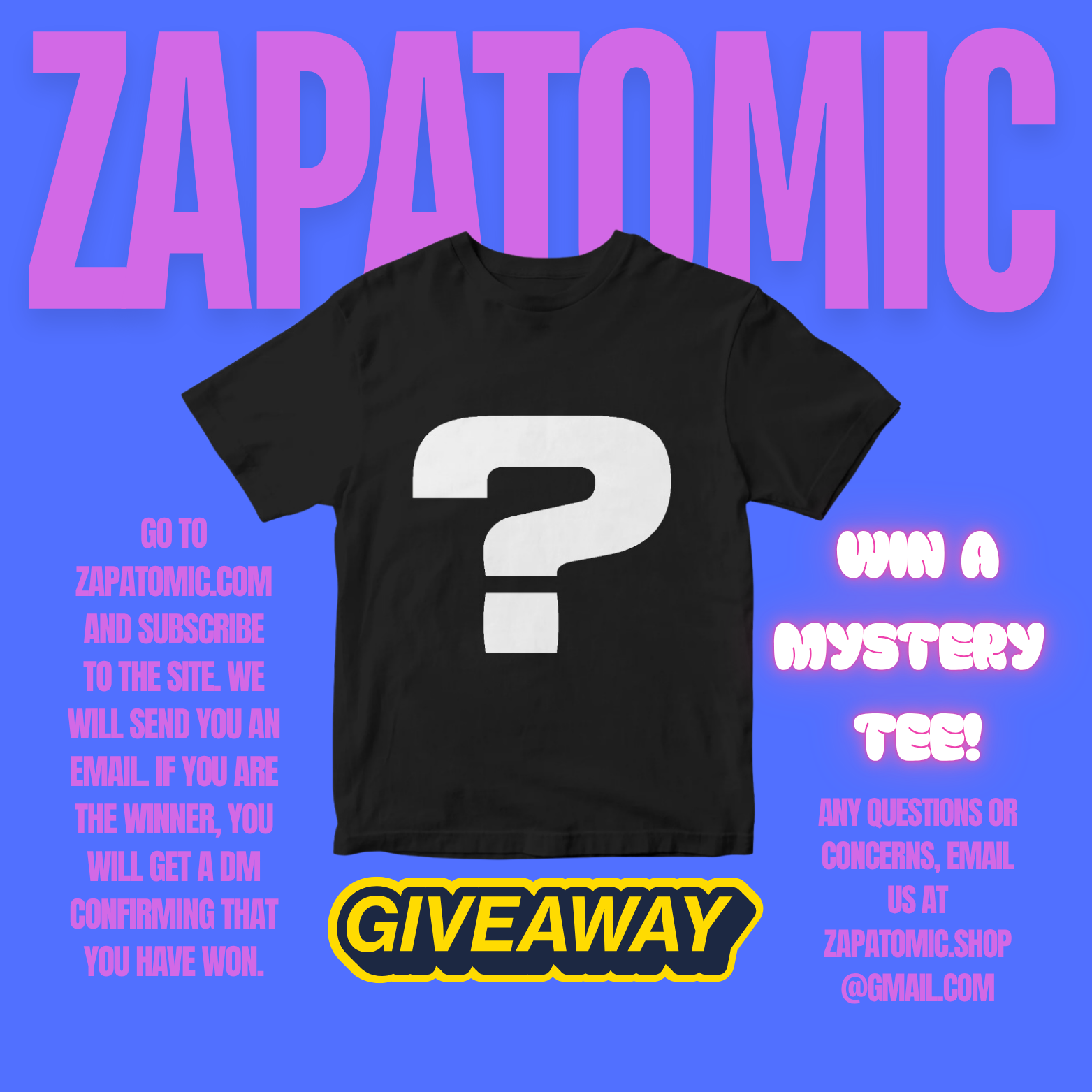 Just sign up below and join our email list for a chance to win one of our signature Zapatomic T-shirts.